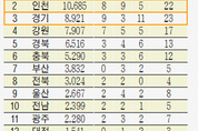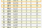 3년 연속 장애인동계체전 종합우승의 꿈을 접은 경기도가 제12회 전국장애인동계체육대회에서 입상권 진입도 어렵게 됐다. 도는 11일 강원도 평창군과 강릉시, 서울 노원구, 동두천시 등에서 분산개최된 대회 3일째 경기에서 금 3개, 은 2개, 동메달 3개를 추가하며 금 9개, 은 3개, 동메달 11개로 종합점수 8천921점으로 서울시(금 14·은 11·동 8, 1만920점)와 인천시(금 8·은 9·동 5, 1만685점)에 이어 종합 3위로 올라섰다. 도는 4위 강원도(금 7·은 5·동 5, 7천907점)에 1천14점 앞서 있지만 이날 열린 아이스슬레지하키 4강에서 서울시에 1-3으로 역전패해 결승진출에 실패하며 대회 마지막 날 아이스슬레지하키에서 우승이 유력한 강원도에 밀려 종합 3위권 유지가 어려울 전망이다. 도는 이날까지 알파인스키와 크로스컨트리스키, 빙상, 바이애슬론이 끝난 가운데 빙상(금 4·동 6, 4천217점)과 바이애슬론(금 1, 477점)에서 각각 종목 2위에 올랐고 크로스컨트리스키(금 2·동 3, 2천251점)에서 3위, 알파인스키(금 2·은 3·동 2, 1천961점)에서 6위를 차지했다. 도는 대회 마지막날인 12일 아이스슬레지하키에서 충남과