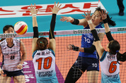 화성 IBK기업은행이 올 시즌 평택 GS칼텍스와의 4차례 맞대결에서 모두 승리를 거두며 선두 자리를 탈환했다. IBK기업은행은 6일 화성종합체육관에서 열린 NH농협 2014~2015 프로배구 V리그 여자부 홈 경기에서 데스티니 후커(25점)와 김희진, 박정아(이상 13점) 삼각편대의 공격이 살아나며 GS칼텍스를 세트 스코어 3-0(25-22 25-16 25-16)로 완파했다. 이로써 IBK기업은행은 12승 6패, 승점 34점으로 성남 한국도로공사(승점 32점)를 끌어내리고 다시 리그 1위로 올라섰다. IBK기업은행은 1세트 초반 GS칼텍스의 새 외국인 선수 헤일리 조던 에커맨의 속공을 막지 못해 3-6으로 끌려갔지만 박정아의 시간차 공격과 오픈 공격, 서브 득점에 상대 에커맨의 공격 실수를 묶어 8-7로 역전에 성공한 뒤 김희진의 블로킹과 채선아의 속공으로 점수 차를 벌려 10-7로 달아났다. 이후 데스티니의 고공 강타가 잇따라 터진 IBK기업은행은 25-22로 첫 세트를 따냈다. 기세가 오른 IBK기업은행은 2세트들어 박정아의 4연속 득점으로 16-9까지 달아난 뒤 김희진의 후위공격과 이날 처음 선발 출전한 센터 김유리의 중앙공격 등으로 25-16으로 가볍