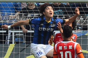 ‘인민루니’ 정대세(수원 블루윙즈)가 올 시즌 세번째로 주간 베스트 11에 선정됐다. 한국프로축구연맹은 지난 5일 수원월드컵경기장에서 열린 프로축구 K리그 클래식 10라운드 수원 블루윙즈와 인천 유나이티드와 경기에서 후반 35분 결승골을 뽑아낸 정대세를 주간 베스트 11 공격수부문에 선정했다고 7일 밝혔다. 정대세는 파괴력과 기술을 겸비한 공격수로 승부를 갈랐던 ‘원샷원킬’의 역량을 발휘하며 팀 승리를 이끌었다는 평가를 받았다. 공격수 부문의 또다른 한자리는 대전 시티즌과 홈 경기때 선제골 도움을 기록한 지쿠(강원FC)가 차지했다. 또 수비수 부문에는 수원 수비의 핵인 홍철과 보스나가 이름을 올렸다. 한편 부천FC 김태영은 K리그 챌린지 7라운드 주간 베스트 11 미드필드 부문에 선정됐고 수비수 부문 김한원(수원FC)과 골키퍼 부문 여명용(고양 Hi FC)도 나란히 이름을 올렸다.
