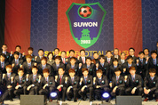 올 시즌 프로축구 2부리그에 진출한 수원FC가 창단 10주년 기념식 및 비전선포식을 갖고 제2의 창단을 선언했다. 수원FC는 지난 8일 라마다프라자 수원호텔 그랜드볼룸에서 구단주인 염태영 수원시장과 노영관 수원시의회의장, 위철환 수원FC 이사장, 이상원 경기신문 대표이사, 신장용 국회의원, 김정남 한국프로축구연맹 부총재 등이 참석한 가운데 창단 10주년 기념식 및 비전선포식을 진행했다. 방송인 황기순이 진행을 맡은 이날 행사에서 염태영 수원시장은 전 이사장들에게 공로패를 전달하고 수원지역 축구 유망주들에게 장학금을 수여했다. 염 시장은 “수원FC가 수원지역 축구인들의 노력으로 창단 10주년을 맞이하는 올해 프로축구 2부리그에 진출했다”며 “수원FC가 프로축구에서도 좋은 성적을 거둬 멀지 않은 시간에 반드시 수원 블루윙즈와 수원 더비를 벌일 것이라고 기대하고 있다”고 말했다. 이어 축구해설가 한준희 씨와 배구해설가 김세진 씨, 마술사 최현우 씨 등의 축하메시지가 영상으로 전해진 뒤 심중식 수원FC 사무국장이 새로운 비전을 발표했다. 심 사무국장은 “새로운 발상과 혁신적인 구단운영을 통해 강한 경쟁력을 보유한
