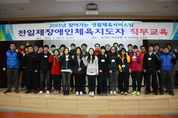 경기도장애인체육회는 20일 경기도인재개발원에서 도내에서 활동중인 장애인생활체육지도자 27명을 대상으로 직무교육을 실시했다. 지도경험이 적은 신규지도자는 물론 시·군에서 현재 활동중인 지도자들에게 현장에서 바로 활용할 수 있는 사례를 중심으로 지도자들의 자신감과 활동폭을 넓혀주고자 마련된 이날 교육은 장애유형에 따른 체육활동 지도요령을 비롯한 뉴스포츠 강습, 지도자의 역할 및 자세 등의 내용으로 진행됐다. 이날 강의를 맡은 용인대 특수체육교육과 이재원 교수는 “장애인체육의 희망은 최일선에서 뛰고 있는 장애인체육지도자”라고 밝힌 뒤 “현장에서 겪고 있는 어려움과 문제점을 해결하려는 노력을 기꺼이 함께 하겠다”고 말했다. 한성섭 도장애인체육회 사무처장은 “장애인생활체육지도자는 장애인체육의 초석이자 미래를 위한 소중한 자산”이라며 “지도자 직무교육을 정례화 하는 등 역량강화를 위해 지속적으로 노력하겠다”고 밝혔다.