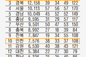 경기도가 제93회 전국체육대회에서 11년 연속 종합우승이라는 대업을 달성하기 위한 행보를 이어갔다. 도는 15일 대구광역시 일원에서 열린 전국체전에서 소프트볼, 스쿼시, 씨름, 조정 등 4개 종목이 추가로 끝나 모두 17개 종목이 마무리 된 가운데 금 100개, 은 97개, 동메달 107개로 종합점수 1만7천368점으로 개최지 대구시(금 56·은 50·동 58, 1만8천401점)에 이어 종합 2위를 이어갔다. 도는 종목우승이 확실시되는 육상과 유도, 탁구 등의 종목이 끝나는 16일 선두로 올라설 것으로 전망된다. 인천시는 금 46개, 은 45개, 동메달 48개로 종합점수 1만875점으로 종합 9위에 올라 전날보다 한 계단 상승했다. ◇경기도 도는 이날 끝난 스쿼시와 조정이 종목 준우승을 차지한 반면 씨름과 소프트볼은 종목 5위와 9위에 머물렀다. 기록면에서는 이날만 수영 남일반 자유형 50m에서 박민규(고양시청)가 양정두(전남수영연맹)와 함께 22초52의 기록으로 10년 만에 한국신기록(종전 22초55)을 세운 것을 비롯해 육상 남대부 400m계주와 남일반 400m계주에서 대회신기록을 수립했다. 다관왕 부문에서는 역도 여일반 +75㎏