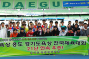 전국 최강의 전력을 자랑하는 경기도 육상이 제93회 전국체육대회에서 21년 연속 종목우승이라는 대업을 달성했다. 도 육상은 16일 대구스타디움에서 끝난 육상 종목에서 금 20개, 은 19개, 동메달 11개로 종합점수 5천601점을 획득하며 지난 1992년 제73회 대구 전국체전 이후 21년 연속 종목우승이라는 대기록을 수립했다. 도는 지난 1985년부터 2000년까지 사이클에서 16연 연속 정상을 지켜온 이래 한 종목에서 21년 동안 정상의 자리를 지킨 것은 육상이 처음이다. 도 육상은 특히 이번 대회 여자일반부 1천600m 계주에서 염은희(23)·육지은(24)·오세라(25·이상 김포시청)·조은주(23·시흥시청)로 구성된 선발팀이 3분41초20으로 한국신기록(종전 3분42초22)을 1초02 앞당기며 우승을 차지하는 등 한국신기록 1개와 대회신기록 3개를 작성했다. 또 남고부 중장거리 이종인(남양주 진건고·1천500m, 5천m)을 비롯해 모두 6명의 2관왕을 배출했다. 도 육상은 강세종목인 트랙에서 금 17개, 은 13개, 동메달 8개로 3천147점을 얻어 예상대로 1위에 올랐고 지난해