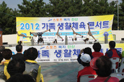 2012 가족생활체육콘서트가 지난 6일 안산시와 광주시에서 각각 개최됐다. 김철민 안산시장, 전준호 시의회의장, 김호석 안산시생활체육회장, 지역주민과 생활체육 동호인 등 500여명이 참석해 안산시 단원구 초지동 둔배미공원에서 열린 안산 가족생활체육콘서트에서는 풍류도시범(국학기공연합회)과 태권도 시범(부곡태권도팀), 댄스스포츠 공연(성향숙), 시니오로빅 공연(조민복) 등 다양한 생활체육 공연과 함께 체육용품, 생활용품 등 푸짐한 경품을 준비해 즉석 생활체육 퀴즈를 통해 경품을 제공하는 등 다양한 행사가 진행됐다. 또 광주시 청석공원에서 열린 광주 가족생활체육콘서트에는 조억동 광주시장과 이성규 시의회의장, 이원용 광주시생활체육회장, 지역주민과 생활체육 동호인 등 2천여명이 참석해 각종 어린이댄스, 태권도연합회 시범, 광주시생활체육회 유한나 지도자의 지도아래 송정동, 초월읍 주민자치센터와 다문화교실에 참여하는 동호인들의 줌바댄스, 남녀 노소가 함께하는 음악줄넘기 등 다양한 생활체육 시범과 러브큐빅, 이진관, 전영록, 김연숙 등 연예인들의 공연, 화려한 불꽃쇼 등이 열렸다.