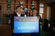 (재)경기도수원월드컵경기장관리재단(이사장 김문수·이하 재단)은 5일 재단 사무총장실에서 ‘2002 한·일 월드컵 10주년 기념 유소년축구페스티벌’ 참가비 496만원 전액을 엄홍길 휴먼재단의 ‘사랑의 축구공 보내기’에 기부했다. 엄홍길 휴먼재단의 ‘사랑의 축구공 보내기’ 캠페인에 기부된 기부금은 엄홍길 휴먼재단이 네팔에 짓고 있는 휴먼스쿨의 어린이들에게 줄 축구공 구입에 사용될 예정이다. 재단이 이번에 기부하는 기부금은 지난 6월 30일에 진행된 ‘2002 한·일 월드컵 10주년 기념 유소년축구페스티벌’에 참가한 참가선수 496명의 1인당(1만원) 참가비로 참가비를 공익재단에 기부한다는 사전 약속에 따라 기부하게 됐다. 이날 기부금을 전달받은 엄홍길 상임이사는 “월드컵재단의 후원으로 축구공을 받는 네팔의 어린이들이 희망을 가질 것”이라며 감사의 뜻을 전했다. 이광인 재단 사무총장은 “국내·외 축구발전을 위해 태동된 재단의 역할이 무엇인지를 보여준 행사로 의미가 있다”며 “앞