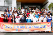경기도체육회장인 김문수 도지사가 2일 오전 11시 태릉선수촌을 방문 런던올림픽 개막을 25일 앞두고 비지땀을 흘리고 있는 경기도 소속 국가대표 선수들을 격려했다. 이날 방문은 대한체육회 부회장이면서 도체육회 부회장을 맞고 있는 김정행 용인대 총장과 이태영 도체육회 사무처장을 비롯한 도체육회 이사 10여명이 동행했다. 김문수 지사를 비롯한 격려단은 박종길 태릉선수촌장으로부터 런던올림픽 훈련 현황에 대한 상황을 설명들은 뒤 개선관과 승리관으로 이동해 훈련 중인 태권도, 역도, 유도 선수들을 직접 격려하면서 이번 올림픽에서 선전을 당부했다. 이어 태릉선수촌 선수식당에서 지도자, 선수들과 오찬을 함께하며 선수 개개인으로부터 올림픽을 준비하는 자세와 각오를 경청했다. 김문수 지사는 경기도선수단에게 “선수여러분의 땀과 노력이 올림픽에서 좋은 성과로 이어져 스포츠를 통해 국제사회에 공헌하는 국가로 성장한 한국과 경기도의 글로벌 위상을 전 세계에 보여주기를 부탁한다”고 당부했다. 한편 도체육회는 이번 김 지사의 방문으로 메달획득에 총력을 다하고 있는 선수들의 사기가 크게 진작될 것으로 기대하고 있다.