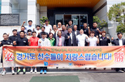 경기도체육회는 20일 태릉선수촌 훈련원을 방문해 다음달 27일부터 열리는 제30회 런던올림픽에 출전하는 경기도 소속 선수들을 격려했다. 도체육회 이태영 사무처장을 비롯해 경기체육인회 정기철 회장, 이형원 도역도연맹 회장, 김희자 도핸드볼협회 회장, 서임식 도유도회 부회장 등으로 구성된 격려단은 장미란, 지훈민(이상 고양시청), 문유라(경기도체육회·이상 역도), 황희태, 김성민(이상 수원시청), 송대남(남양주시청), 최광현(국군체육부대·이상 유도), 김승일(체조·수원시청) 등 8명의 선수와 김기웅 역도 감독, 정훈 유도감독, 유옥렬 체조 감독 등 지도자들을 만나 런던올림픽에서 선전을 당부했다. 정기철 체육인회 회장은 “이번 올림픽에서 최선을 다해 다같이 금메달을 획득, 온 국민이 하나가 될 수 있는 계기를 꼭 마련해주기를 바라며 선수들 소속팀이나 단체의 명예를 드높여 줄 수 있기를 경기도민 전체가 기다리고 있을 것”이라고 말했다.