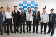경기도체육회는 13일 도체육회관 임원실에서 2012년 런던올림픽 태권도 국가대표로 출전하는 황경선(고양시청)과 김경덕 도태권도협회 부회장, 임종남 도태권도협회 전무이사, 함준 고양시청 감독을 초청, 런던올림픽 필승을 위한 간담회를 개최했다. 황경선은 한국 태권도 최초로 2004년 아테네올림픽(동메달)과 2008년 베이징올림픽(금메달)에서 연속 메달을 목에 걸었고 런던올림픽 출전권까지 거머쥐며 한국 태권도 사상 최초로 올림픽 무대를 세 차례 밟는 선수가 됐다. 또 베이징올림픽에 이어 2회 연속 금메달 획득의 위업에 도전하고 있다. 황경선은 “부상 없이 잘 준비해 꼭 좋은 성적을 거두고 싶다”며 “도체육회의 격려에 힘입어 반드시 금메달을 따겠다”고 밝혔다.