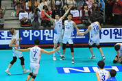 인천 대한항공이 풀세트 접전 끝에 천안 현대캐피탈을 꺾고 프로배구 V리그 플레이오프에서 서전을 승리로 장식했다. 대한항공은은 31일 인천 도원실내체육관에서 열린 NH농협 2011~2012 프로배구 V리그 플레이오프(3전2승제) 1차전에서 트리플크라운을 달성한 마틴(후위공격 7개·블로킹 3개·서브 5개)을 앞세워 현대캐피탈을 3-2(20-25 21-25 27-25 25-22 15-10)로 제압했다. 대한항공은 경기 초반부터 준플레이오프에서 수원 KEPCO45에 손쉽게 2승을 거두고 올라온 현대캐피탈의 기세에 눌려 고전했다. 1세트에 현대캐피탈 수니아스에게만 9점을 내주고 상대 블로킹을 넘지 못한 대한항공은 20-25로 세트를 내주며 불안한 출발을 보였고 2세트에도 현대캐피탈 수니아스-문성민-윤봉우가 고른 득점을 올린 반면 세터 한선수가 흔들린 대한항공은 김학민의 득점으로 추격에 나섰지만 21-25로 2세트 마저 내줘 패색이 짙어졌다. 그러나 대한항공은 3세트 들어 혼자 10점을 몰아친 마틴의 공격이 살아나면서 반격을 시작해 듀스 접전 끝에 정규리그 서브 1위에 빛나는 마틴의 스파이크 서브에 힘입어 27-25로 세트를 따냈다. 추격의 발판을 마련한 대한항공은 4