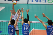 인천 대한항공이 선두 대전 삼성화재를 제물로 팀 최다 연승 신기록을 세웠다. 대한항공은 5일 인천 도원시립체육관에서 열린 NH농협 2011~2012 프로배구 V리그 5라운드 홈경기에서 88%의 공격성공률을 보인 ‘해결사’ 네맥 마틴(27득점)을 앞세워 삼성화재를 3-0(25-22 25-17 25-19)으로 완파했다. 이로써 대한항공은 지난 시즌 작성한 팀 최다 연승 기록(12연승)을 넘어선 13연승을 질주하며 19승6패, 승점 53점으로 선두 삼성화재(60점)를 승점 7점 차로 바짝 뒤쫓았다. 대한항공은 또 연승 행진의 최대 걸림돌인 삼성화재를 넘어서면서 V리그 단일시즌 최다 연승 기록에도 한발 더 다가섰다. 역대 단일시즌 최다 연승 기록은 천안 현대캐피탈이 2005~2006 시즌에 작성한 15연승이며 복수시즌 최다 연승은 ‘17연승’으로 삼성화재가 2005~2006과 2006~2007 시즌에 걸쳐 세운 기록이다. 대한항공은 마틴과 김학민(12득점)의 좌우 날개와 이영택(8득점), 진상헌(3득점)의 센터 공격을 골고루 활용하면서 경기를 쉽게 풀어나갔다. 반면 삼성화재는 ‘주포’ 가빈 슈미트가 올 시즌 한 경기 최소 득점인 19득점(공격 성공률 46.15%)을