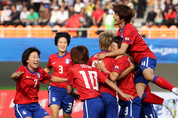 한국 여자축구가 아시안게임에서 사상 첫 메달을 획득했다. 최인철 감독이 이끈 한국 대표팀은 22일 중국 광저우 톈허스타디움에서 열린 2010 광저우 아시안게임 여자축구 3~4위 결정전에서 전반 2분 박희영(고양대교)과 37분 지소연(한양여대)의 연속골로 중국을 2-0으로 꺾고 동메달을 차지했다. 이로써 한국은 1990년 베이징 대회에서 여자축구가 정식 종목으로 채택된 이후 처음으로 메달을 목에 걸었다. 그동안 최고 성적은 4위(1994, 2002, 2006년)였다. 조별리그 마지막 경기에서 중국과 맞붙어 0-0으로 비기고 나서 승부차기 끝에 8-7로 이겼던 한국은 이번에는 중국을 첫 메달의 제물로 삼았다. 한국은 지소연과 박희영을 4-4-2 포메이션의 최전방 투톱으로 내세웠고, 좌·우 날개에 김수연(충남일화)과 전가을(수원FMC), 중앙 미드필더에 권하늘(부산상무)과 박은정(서울시청)을 배치했다. 포백 수비진은 왼쪽부터 이은미-홍경숙(이상 고양대교)-김도연(서울시청)-류지은(대교)으로 꾸렸고, 골문은 전민경(대교)이 지켰다. 한국은 전반 2분 만에 박은정의 스루패스를 받은 박희영이 페널티지역 정면에서 오른발슛으로 중국 골문을 열며 일찌감치 기선을 잡았다. 기