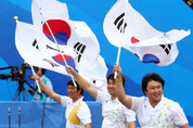 한국이 2010 광저우 아시안게임 첫 주말을 황금 주말로 만들며 4회 연속 종합 2위 달성을 위한 7부 능선을 넘었다. 한국은 21일 중국 광저우 일원에서 열린 대회 8일째 경기에서 양궁 여자 단체전 우승 등 지난 19일부터 주말동안 금메달 17개를 추가하고 은메달 14개, 동메달 20개를 보태 이날 오후 9시 현재 금 53개, 은 44개, 동메달 60개로 일찌감치 종합 우승을 확정한 중국(금 143·은 68·동 69)에 이어 대회 개막 이후 줄곧 종합 2위를 지켰다. 3위 일본(금 30·은 53·동 58)과의 금메달 격차도 13개로 늘리며 4회 연속 종합 2위 수성에 한발 더 다가섰다. 북한은 주말 동안 금메달 없이 은 1개, 동메달 1개만 추가하며 금 5개, 은 8개, 동메달 12개로 종합 8위로 내려앉았다. 한국은 이날 열린 양궁 여자 단체전에서 2차 연장까지 가는 접전 끝에 중국을 꺾고 대회 4연패를 달성했다. 준결승전에서 연장 접전 끝에 복병 인도를 꺾고 결승에 오른 한국은 중국과 4엔드까지 220-220으로 승부를 가리지 못한 뒤 1차 연장에서도 27-27로 무승부를 기록했다. 그러나 한국은 2차