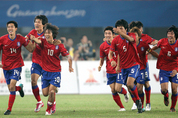 한국 남자축구 대표팀이 홈팀 중국을 꺾고 8강에 진출, 24년 만에 아시아 정상 탈환에 한발 더 다가섰다. ▶관련기사 26면 한국은 15일 중국 광저우 텐허스타디움에서 열린 2010 광저우 아시안게임 남자축구 16강전 중국과 경기에서 전반 20분 김정우의 선제골과 후반 5분 박주영, 후반 13분 조영철의 추가골에 힘입어 3-0 완승을 거뒀다. 이로써 한국은 오는 19일 오후 8시 같은 장소에서 4강 진출에 도전한다. 박주영과 지동원을 투톱으로 세운 한국은 6만 중국 관중의 ‘짜요(힘내라)’ 응원에도 흔들리지 않고 전반 20분 조영철의 절묘한 땅볼 크로스를 김정우가 왼발로 가볍게 밀어넣으며 기선을 잡은 뒤 후반 5분 박주영의 프리킥 골과 후반 13분 지동원의 도움을 받은 조영철의 쐐기골로 홈팀 중국에 완승을 거뒀다. 한편 한국은 이날 사격과 유도, 정구에서 금메달 5개를 추가하는 등 금 5개, 은 3개, 동메달 3개를 추가해 금 18개, 은 13개, 동메달 17개로 중국(금 52·은 19·동 19)에 이어 종합 2위를 굳게 지켰다.