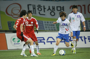 수원시청이 실업축구 최강을 가리는 내셔널리그에서 사상 첫 우승에 한발 다가섰다. 수원은 16일 대전 한밭종합운동장에서 열린 대한생명 2010 내셔널리그 챔피언결정 1차전 원정경기에서 상대 골키퍼의 자책골과 장지욱의 쐐기골에 힘입어 대전 한국수력원자력을 2-0으로 완파하고 먼저 1승을 챙겼다. 이로써 지난 2005년과 2007년, 2008년 세차례나 챔피언결정전에 오르고도 마지막 고비를 넘기지 못해 통합 챔피언에 오르지 못한 채 세번 모두 준우승에 그쳤던 수원은 오는 20일 수원종합운동장에서 열리는 홈 경기에서 비기기만 해도 창단 이후 첫 우승을 달성하게 된다. 전기리그 10위에 그치며 부진했던 수원은 후기리그에 8승6무로 무패행진을 이어가며 4강 플레이오프에 진출한 뒤 4강에서 ‘시청 라이벌’ 강릉시청을 3-1로 제압하며 챔피언 결정전에 오른 상승세를 이날도 이어갔다. 수원은 전반 초반부터 대전을 거세게 몰아붙이며 선제골 사냥에 나섰고 전반 26분 상대 골키퍼의 자책골로 기선을 잡았다. 수원의 미드필더 이승환이 왼쪽 코너킥 상황에서 오른발로 길게 감아찬 공을 대전의 골키퍼 최규환이 제대로 잡지 못하고 볼을 골문 안쪽에 떨어뜨리며 자책골을 기록한 것. 상대 실