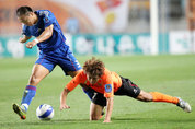 ‘디펜딩 챔피언’ 수원 블루윙즈가 승부차기까지 가는 접전 끝에 제주 유나이티드를 꺾고 FA컵 2연패에 한발더 다가섰다. 수원은 29일 수원월드컵경기장에서 열린 2010 하나은행 FA컵 축구선수권대회 준결승전에서 120분 동안 골을 뽑아내지 못한 채 0-0 무승부를 기록한 뒤 승부차기에서 4-2으로 힘겹게 승리, 결승에 진출했다. 이로써 수원은 오는 10월 24일 전남 드래곤즈와 연장 접전 끝에 3-2로 승리한 부산 아이파크와 우승컵을 놓고 맞대결을 펼치게 됐다. 최근 정규리그 부진과 아시아축구연맹(AFC) 챔피언스리그 8강 탈락으로 수세에 몰린 수원은 신영록과 염기훈, 이상호로 공격라인을 구성하고 김두현과 홍순학을 중원에, 양상민과 리웨이펑을 좌우 측면에 세웠다. 스리백은 강민수-황재원-최성환으로 구성했고 하강진이 골키퍼 장갑을 꼈다. 단판 승부인 만큼 전반 초반부터 조심스런 경기를 펼친 수원은 전반 11분 최성환의 슛이 크로스바를 넘기며 아쉬움을 남겼고 35분에는 리웨이펑의 강력한 왼발슛이 제주 골키퍼 김호준의 선방에 막히며 득점없이 전반을 마쳤다. 수원은 후반에도 제주의 골문을 열기 위해 총공세를 펼쳤지만 이렇다할 기회를 잡지 못했고