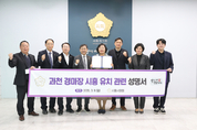 시흥시의회는 9일 의회 청사에서 의원들이 참석한 가운데 과천 경마장 시흥 유치 관련 성명서를 발표했다. 이번 성명서는 최근 정부 발표로 과천 경마장 이전 계획이 공식화됨에 따라, 시흥시민의 권익을 보호하고 지역의 미래를 체계적으로 준비하기 위한 시의회의 입장을 밝히기 위해 마련됐다. 시의회는 이날 성명서를 통해 경마장 유치가 지역 경제 활성화뿐 아니라 교통·환경·생활 인프라 확충 등 다방면에서 시흥시와 시민의 삶에 큰 영향을 미칠 수 있다는 점을 강조했다. 아울러 시민 중심의 투명한 절차와 충분한 의견 수렴이 선행되어야 한다고 밝혔다. 또한 “시민 이익을 최우선으로, 충분한 시민 의견 수렴이 이뤄질 수 있도록 행정 절차를 뒷받침하겠다”라며 “유치가 본격화될 경우, 교통·환경 대책, 생활SOC 확충, 지역 상생 방안이 선행 조건으로 마련되도록 의회의 책임 있는 역할을 다할 것”이라고 밝혔다. 오인열 의장은 “집행부와 긴밀히 협력하되, 시민의 대표기관으로서 철저한 검증과 합리적인 지원을 아끼지 않겠다”라며 치밀하고 책임감 있는 의정 활동을 약속했다. [ 경기신문 = 김원규 기자 ]