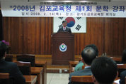 본지 최연식 제2사회부 부장(김포 강화주재·시인)이 지난 14일 김포교육청 강당에서 교육청직원들을 대상으로 특강을 실시했다. 김포교육청은 직무 수행을 위한 작문 능력 향상과 공무원으로서의 교양 함양을 위해 ‘2008 김포교육청 제1회 문학(작문)강좌’를 최 기자를 시인 자격으로 초빙, 교육을 실시했다. 이날 특강에서 최연식 시인은 발상의 전환을 위한 세상을 보는 눈과 생각바꾸기, 문학을 하는 마음 자세, 시 창작의 이해 등에 대해 강의했다. 김포교육청 관계자는 “앞으로도 이러한 전문교양강좌 및 직무교육을 통해 직원들이 끊임없이 배우고 변화해 발전할 수 있도록 지원 할 예정”이라고 밝혔다. 본사 최연식 기자가 김포교육청 직원을 대상으로 특강을 실시하고 있다.