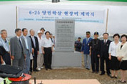 6.25 한국전쟁 당시 학살된 6백여 양민들의 넋을 추모하기 위한 6.25 양민학살 현장비 제막식이 양평문화원 주체로 23일 양평읍 양근 4리 소재 남한강변에서 거행됐다. 이날 제막식에는 이병걸 양평군수 권한대행을 비롯해 김유택 양평문화원장, 이인영 군의장, 유관 기관단체 임직원, 주민 등 100여명이 참석해 희생된 고인들의 넋을 기렸다. 이병걸 권한대행은 이날 “우리 후손들에게 각성과 함께 역사의 진실을 깨우쳐 준 양평문화원의 노력에 감사하다”며 “고귀한 생명을 잃은 6백여 양평군민의 넋을 추모하는데 노력을 아끼지 않겠다”고 말했다. 김유택 문화원장은 인사말에서 “6.25 양민학살이란 엄청난 비극이 그저 역사의 한 페이지로 퇴색되는 현실이 무척이나 안타깝다”며 “생지옥 같던 이 곳에서 억울하게 숨져간 영혼들의 恨이 제막식을 계기로 조금이나마 풀리길 바란다”고 말했다. 양평 6.25 양민학살은 지난 1950년 9월 15일 인천 상륙작전으로 패색이 짙어진 북한군이 퇴각하면서 양평지역 6백여명의 양민들을 떠드렁산 백사장으로 끌어내 집단학살한 사건이다. 한편 이번 제막식은 올 3월 문화원 정기총회에서 발의, 관련 유관단체와의 건립 협의 후 비를 건립키로 결정됐으며