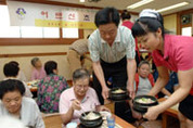 동두천시 생연2동 새마을 지도자 부녀회(회장 임상오·임옥순) 회원 30여명은 지난 21일 신천 경로당 노인 50여명을 초청, 자장면과 탕수육 등 중화요리로 점심을 대접했다. 이번 행사는 식당을 운영하는 새마을지도자 김종남(생연2동내 중화각 운영)씨의 도움을 받아 부녀회와 지도자들이 직접 자장면과 탕수육 등의 음식을 만들었다. 생연2동 지도자협의회의 사랑의 자장면 행사는 소외받고 있는 이웃 노인들의 공경을 통해 우리 사회의 어른 공경에 대한 공감대를 형성하는 좋은 기회가 되고 있다. 임옥순 회장은 “새마을사업을 통해 앞으로도 소외되고 어려운 이웃에게 봉사하는 단체로 활동할 계획”이라고 밝혔다. /동두천=진양현기자 jyh@