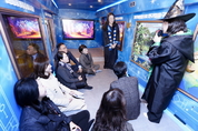 수원시가 지난해 1월부터 추진했던 '수원시 이동환경교실 체험차량 제작사업'으로, 수소전기버스를 개조해 체험형 환경교육 공간으로 만든 '찾아가는 수원 기후마법학교'를 선보였다. 11일 시는 지난 10일 시청 상황실과 별관 옆 야외공간에서 '찾아가는 수원 기후마법학교' 시연회를 개최했다고 밝혔다. 행사는 경과보고, 인사말, 테이프 커팅식, 체험버스 라운딩 순으로 진행됐다. 참석자들은 버스 내부를 둘러보며 기후변화와 탄소중립을 주제로 한 다양한 체험 콘텐츠를 살펴봤다. 내부는 기후변화 체험, 탄소중립 퀴즈, 에너지 절약 미션 등 참여형 프로그램으로 구성됐다. 학교와 지역행사를 직접 찾아가 이동형 환경교실로 운영한다. 시는 시민과 학생이 기후인식을 높이고 생활 속 탄소중립을 실천하도록 적극 지원할 계획이다. 시 관계자는 "수소버스를 활용한 기후마법학교는 친환경 교통수단과 환경교육을 결합한 새로운 시도"라며 "미래세대가 기후위기의 심각성을 이해하고 생활 속 탄소중립을 실천하는 계기가 되길 바란다"고 말했다. [ 경기신문 = 장진 기자 ]