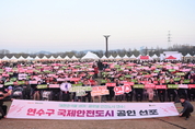 인천 연수구가 세계적 수준의 사고 예방 시스템과 안전 거버넌스를 갖춘 ‘국제안전도시’를 공식 선포했다. 구는 지난 28일 연수한마음공원에서 유관기관 관계자와 구민 등 5000여 명이 참석한 가운데 ‘국제안전도시 공인 선포식’을 개최하고, 구민 모두가 안심하고 살 수 있는 글로벌 안전 도시로의 도약을 대내외에 알렸다. 이번 선포식은 연수구가 세계적 수준의 사고 예방 시스템을 갖춘 ‘국제안전도시’임을 알리고, 안전 도시의 주인공으로서 구민들의 자긍심을 고취하기 위해 마련됐다. 행사는 2026 새봄맞이 연수한마음 축제와 연계해 열렸으며 ▲국제안전도시 인증 영상 상영 ▲자매도시 축하 메시지 ▲공인협정서 서명 및 공인패 전달 ▲안전실천 선서 및 퍼포먼스 순으로 진행됐다. 특히 안전실천 선서식에서는 이재호 구청장을 비롯해 노인회장, 어린이 안전 히어로즈, 안전 보안관, 의용소방대 등 각계각층의 구민 대표들이 참여해 ‘사고 없는 안전 공동체’를 만들기 위한 의지를 다졌다. ■ '데이터와 거버넌스'가 만든 쾌거… 국제 심사위원단 호평 구는 지난 2025년 12월, 스웨덴 소재 국제안전도시 공인센터(ISCCC)로부터 국제안전도시 최종 공인 승인을 받았다. ISCCC 심사단은