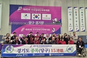 경기도가 전국장애인체육대회 당구에서 15회 연속 종목우승을 달성했다. 도 당구는 3일 부산 벡스코 제2전시장에서 종료된 대회에서 종목점수 8640점(금 6·은 1·동 1)을 수확하며 우승트로피의 주인이 됐다. 2위는 경북(4322점), 3위는 전남(4222.40점)이 차지했다. 도 당구는 3관왕 1명과 2관왕 1명을 배출하는 성과도 거뒀다. 이정희는 남자 1쿠션 단식 BIS(선수부)에서 1위에 입상한 뒤 남자 3쿠션 단식 BIS(선수부)에서도 패권을 안았다. 그리고 이날 이영호, 양정일, 김윤수와 팀을 꾸려 출전한 남자 단체전 BIS/BIW(선수부) 결승에서 울산을 제압하고 정상에 등극, 3관왕을 완성했다. 또, 이영호는 10월 31일 남자 1쿠션 단식 BIW(선수부) 우승에 이어 2관왕에 올랐다. 도 당구 선수단을 이끈 이재관 총감독(경기도장애인당구협회 사무국장)은 "전국장애인체전은 살얼음판이다. 64강부터 차근차근 올라가야 하기 때문에 매 경기 최선을 다해야 하고, 선수들의 체력 소모도 크다"며 "하지만 선수들이 뛰어난 집중력을 발휘했기 때문에 15회 연속 우승이라는 성과를 달성했다. 악조건에서도 열심히 훈련한 선수들에게 감사하다"라고 전했다. 이어 "2
