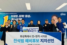 화성시 전·현직 시·도의원들이 뜻을 모아 진석범 화성특례시장 예비후보에 대한 공식 지지를 선언했다. 신미숙 경기도의회 의원과 이해남 화성시의회 의원을 비롯해 김경오·박종선 전 화성시의회 의장, 정현주·노경애·조병수·최용주·김효상 전 화성시의회 의원 등 총 9명은 8일 지지선언문을 발표하고 “화성시의 지속 가능한 발전과 시민 삶의 질 향상을 위해 진석범 예비후보를 적극 지지한다”고 밝혔다. 이들은 선언문에서 “진 예비후보는 중앙과 광역, 지방을 아우르는 풍부한 행정 경험과 정책 기획 역량을 갖춘 준비된 리더”라며 “현장 중심의 실천력과 시민을 향한 책임 있는 행정 철학은 지금의 화성시에 반드시 필요한 자질”이라고 평가했다. 이어 “청와대 선임행정관으로 재직하며 다양한 정책의 설계와 실행을 주도했고, 그 과정에서 추진력과 조정 능력을 입증했다”며 “보여주기식이 아닌 결과로 평가받는 행정가”라고 강조했다. 또한 “성남시와 경기도, 청와대를 거치며 축적한 경험을 바탕으로 현 정부의 정책 기조를 가장 잘 이해하고 실천할 수 있는 후보”라며 “시대적 요구에 부응할 수 있는 화성특례시의 적임자”라고 밝혔다. 이들은 “진석범 예비후보를 중심으로 화성특례시의 새로운 도약을