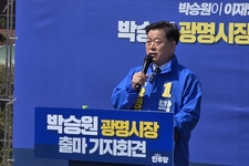 국민의힘 김대영 안양시장 후보가 14일 삼덕공원에서 출마 기자회견을 실시했다. 김 후보는 이날 “과거 안양은 수도권의 중심 도시로서 눈부신 발전을 이루어 왔지만, 지난 8년은 말 그대로 모든 게 멈췄다”며 “정체된 안양은 교체가 정답”이라고 주장했다. 그러면서 4개 정책 방향을 제시했다. 그는 “시민 중심의 행정 실현, 지역경제 살리기, 아이부터 어르신까지 모두가 행복한 도시 만들기, 지속 가능한 도시 환경 조성을 추진해 안양의 변화를 이끌겠다”고 다짐했다. 김 후보는 “서민과 함께하는 시장이 되겠다는 의미를 담아 중앙시장 입구인 삼덕공원에서 기자회견을 가졌다”며 “앞으로 시민 누구나 체감할 수 있는 변화를 만들어내겠다”며 지지를 호소했다. [ 경기신문 = 송경식 기자 ]