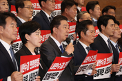 여야는 국정감사 2라운드에 접어든 20일 장동혁 국민의힘 대표의 윤석열 전 대통령 면회와 김현지 대통령실 제1부속실장의 핸드폰 교체 등을 놓고 치열한 공방을 펼쳤다. 김병기 더불어민주당 원내대표는 “장 대표는 윤석열과 함께 ‘좌파 정권을 무너뜨리자’고 외쳤다. 그건 대선 불복을 넘어선 명백한 내란 선동이다. 헌정 파괴 선언”이라고 비판했다. 김 원내대표는 이날 오후 국회 본청 로텐더홀 계단에서 ‘내란수괴 면회 극우 선동 장동혁 규탄 기자회견’을 열어 “내란의 정당화·미화·선동 결코 용납하지 않겠다”며 이같이 밝혔다. 정청래 대표는 앞서 열린 최고위원회의에서 “공당의 대표가 내란 수괴를 미화하며 응원하다니, 국민에 대한 심각한 배반 행위”라며 “윤석열은 헌법을 파괴하고 민주주의를 공격한 범죄자이다. 이 무슨 해괴망측한 짓이냐”고 질타했다. 정 대표는 이어 “충격을 넘어 끔찍하고 참담하다. 그 정신세계가 참으로 잔인하다”며 “국민의힘이 내란의 망령에서 벗어나지 못한 채 반헌법적인 행동을 지속한다면 위헌 정당 해산은 시간문제일 뿐”이라고 주장했다. 전현희 최고위원은 “국감 도중 내란 수괴 윤석열을 ‘알현’한 장 대표는 차라리 ‘윤어게인’ 교주가 제격”이라며 “윤석열은 불법쿠데타로 법의 심판을 받을 내란수괴이지 기도로 죄의 사함을 받을 어린 양이 아니다”고 직격했다. 송언석 국민의힘 원내대표는 “최측근 실세인 김현지 전 총무비서관의 국감 증인 출석 문제에 대해서도 나 몰라라 하면서 묵살하고 있다”고 비판했다. 송 원내대표는 이날 ‘국감 중간평가 기자간담회’를 열어 “국정 난맥상의 근본 원인은 이재명 대통령의 무책임한 리더십에 있다”며 이같이 말했다. 박정훈 의원은 기자회견을 통해 “김현지 실장의 휴대전화 교체 기록을 KT로부터 입수해 분석했다”며 “이 대통령의 대장동, 대북송금 관련한 결정적 순간마다 휴대전화 교체한 것으로 확인했다. 올해 국감 시작 당일에는 2차례나 교체했다”고 밝혔다. 박 의원은 이어 “김 실장은 전화 교체 이유가 무엇인지, 증거인멸의 의도가 있었는지, 국감에 출석해 소상히 밝혀야 한다”고 주장했다. 최보윤 수석대변인은 논평에서 “(김 부속실장이) 이 대통령 관련 의혹이 불거질 때마다 휴대폰을 바꿔온 것은 단순한 ‘개인 사생활’로 치부하기 어렵다”며 “국감장에서 진실을 밝히는 대신 기기를 교체하며 흔적을 지운 듯한 행태는 더더욱 석연치 않다. 그야말로 ‘구린 냄새’가 난다”고 말했다. [ 경기신문 = 김재민·한주희 기자 ]
