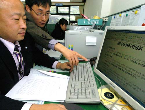 지난 5월 제정된 '진실, 화해를 위한 과거사 기본법'에 의해 1일 공식 출범한 과거사정리위원회가 본격적인 업무를 착수한 가운데 2일 경기도청 자치행정과 역사규명팀 직원들이 과거사 관련 서류를 검토하고 있다.