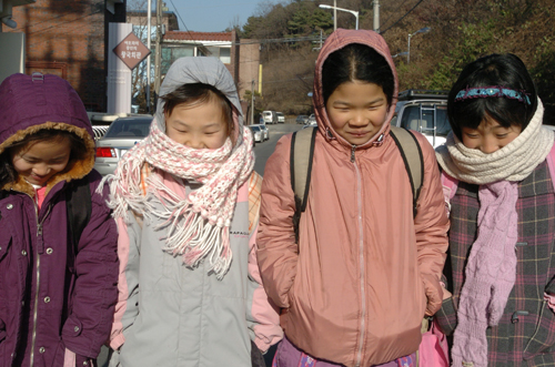 지난 주말부터 강추위가 닷새째 이어진 14일 오후 수원시 연무동에서 하교길 어린이들이 발걸음을 재촉하고 있다.