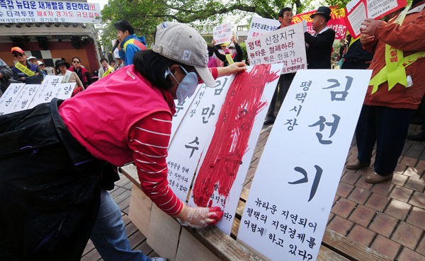 주민들은 “뉴타운은 김문수 지사가 충분한 검토 없이 표만 받고 보자는 무책임한 공약으로 시작된 사업”이라며 “경기가 좋아도 투기적 가격상승으로 소수 토건자본과 지자체·투기세력만 좋은 사업일 뿐”이라고 주장했다.