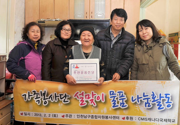남구종합자원봉사센터는 최근 CMIS 캐나다국제학교 학생들의 기부 물품 후원으로 설맞이 나눔 전달식을 가졌다. 기부된 물품들은 남구자원봉사센터 가족봉사단이 남구 관내 차상위계층 및 홀몸노인 15가구에 직접 전달했다.