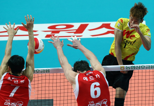 시몬은 양팀 최다인 32점을 올렸고 송명근이 17점, 박원빈이 블로킹 5개로 힘을 보탰다.