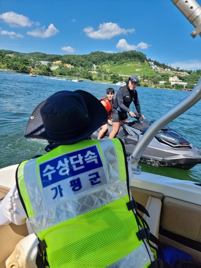 가평경찰서는 피서기 여름 행락철을 맞아 북한강 일원 운행 중인 모터보트, 제트스키 등 각종 물놀이시설의 무면허·안전장구미착용·음주운전행위 등으로 사고위험을 예방하고자 경찰·자치단체 관광과 수상관광팀, 소방119 수난구조대와 합동 테마지도·단속을 실시했다.