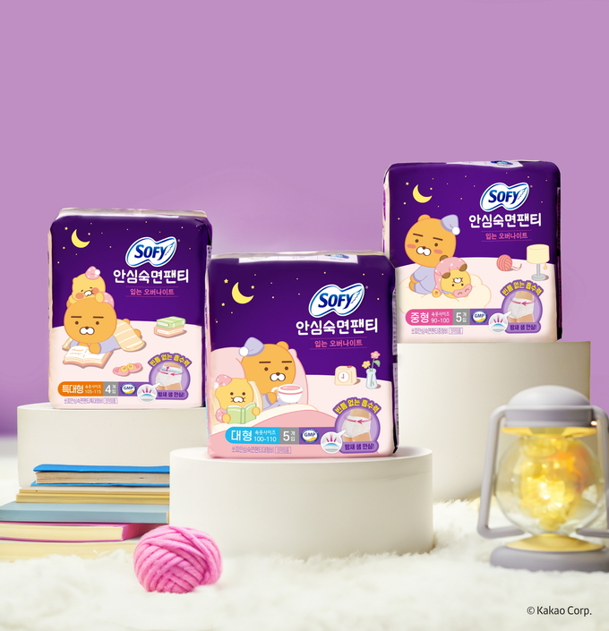 엘지유니참은 생리대 브랜드 ‘쏘피(SOFY)’가 카카오프렌즈 인기 캐릭터 ‘라이언’과 ‘춘식이’ 디자인을 적용한 안심숙면팬티를 선보인다고 13일 밝혔다.