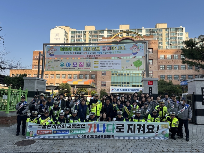 5일 수원권선경찰서는 '스쿨존 어린이 교통안전 가나다로 지켜요!' 캠페인을 실시했다.