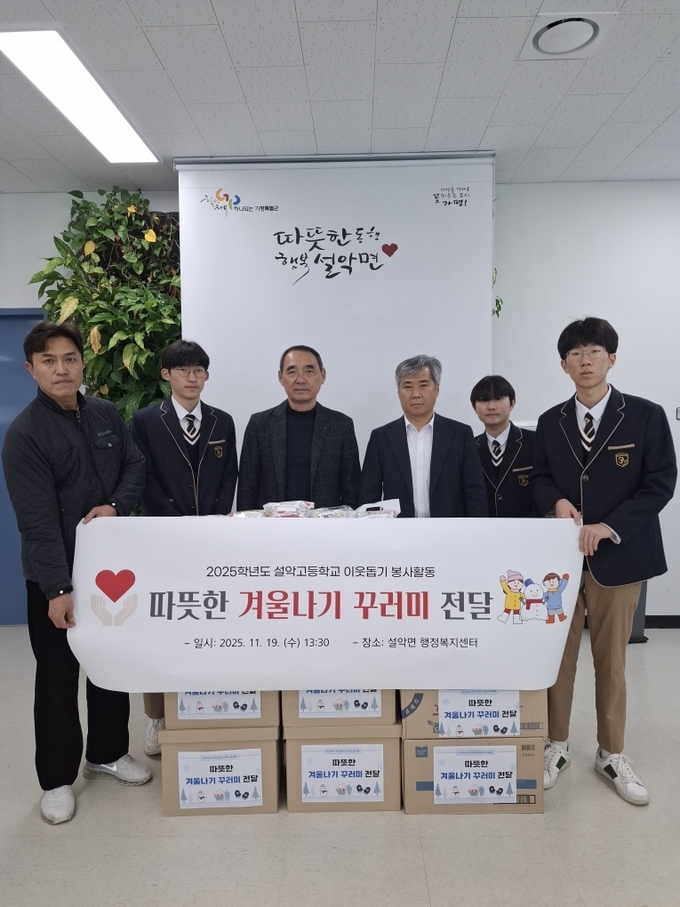 이동철 설악면장은 "학생들이 직접 준비한 겨울 꾸러미는 취약계층에게 큰 힘과 위로가 된다"며 "해마다 이어지는 설악고의 진심 어린 나눔에 감사드리고 기탁된 꾸러미는 필요한 분들께 소중하게 전달하겠다"고 밝혔다.