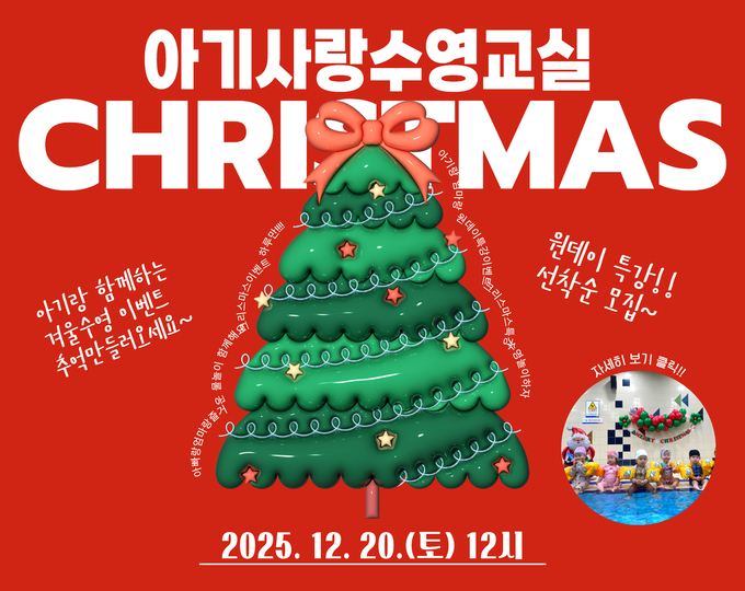 프로그램은 ▲크리스마스 테마의 놀이형 수영활동 ▲보호자와 함께하는 체험형 수업 ▲가족을 위한 수중촬영 이벤트 등으로 구성된다.