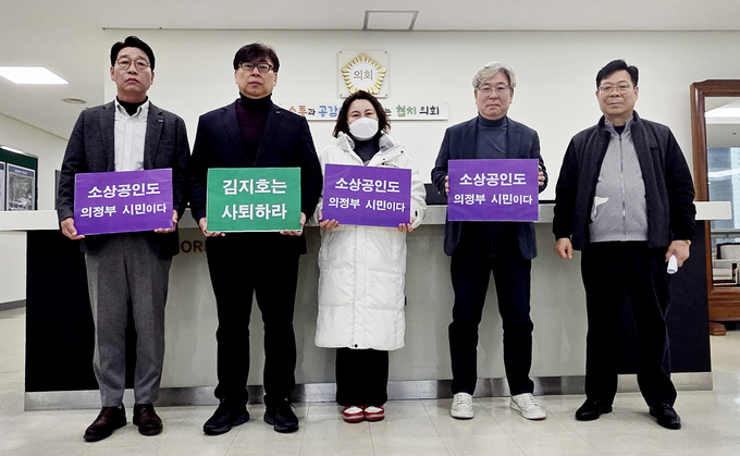 의정부시 소상공인들이 지역 상권 활성화 노력과 후원 기업을 폄하한 김지호 의정부시의회 의원의 발언과 관련해 의정부시의회를 찾아 강력 항의했다.
