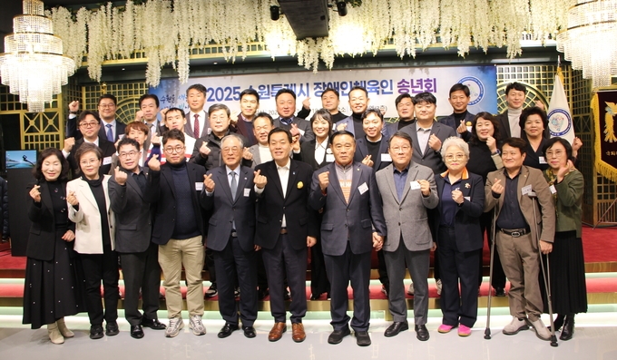 수원시장애인체육회가 '2025년 수원시장애인체육인 송년회'를 개최하고 장애인체육 발전에 힘쓴 유공자들을 격려했다.