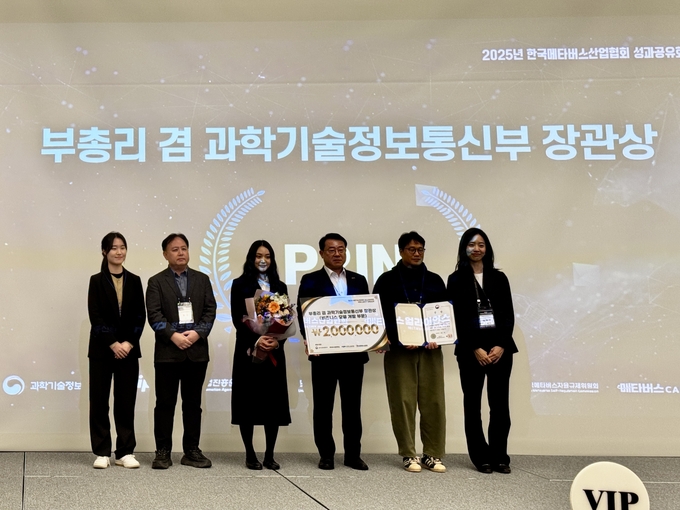 (재)시흥산업진흥원은 지난 2일 서울 나인트리 프리미어 로카우스 호텔에서 열린 "2025 메타버스 얼라이언스 성과공유회"에서, 진흥원이 참여한 프로젝트가‘2025 메타버스 얼라이언스 프로젝트 그룹’부문에서 과학기술정보통신부 장관상을 수상했다고 밝혔다.