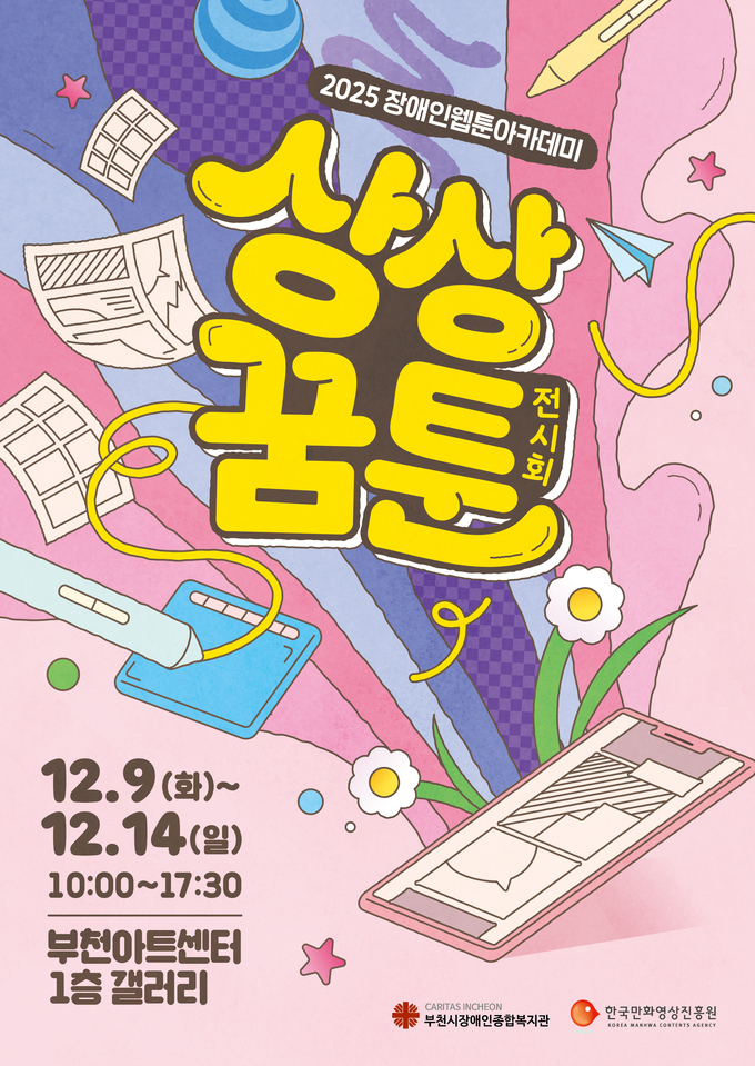 부천시장애인종합복지관이 한국만화영상진흥원의 지원을 받아 운영하는 장애인웹툰아카데미 ‘상상꿈툰’의 '우리가 바라는 세상' 전시회를 오는 12월 9일(화)부터 14일(일)까지 부천아트센터 1층 갤러리에서 개최한다.