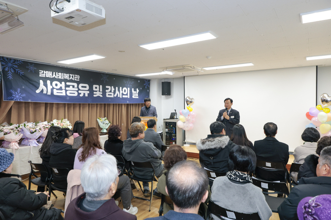 신동화 구리시의회 의장이 지난 3일 갈매사회복지관에서 진행된‘2025 성과보고 및 감사의 날’행사에 참석, 박인숙 관장님과 직원들의 노고에 감사인사를 전했다고 4일 밝혔다.
