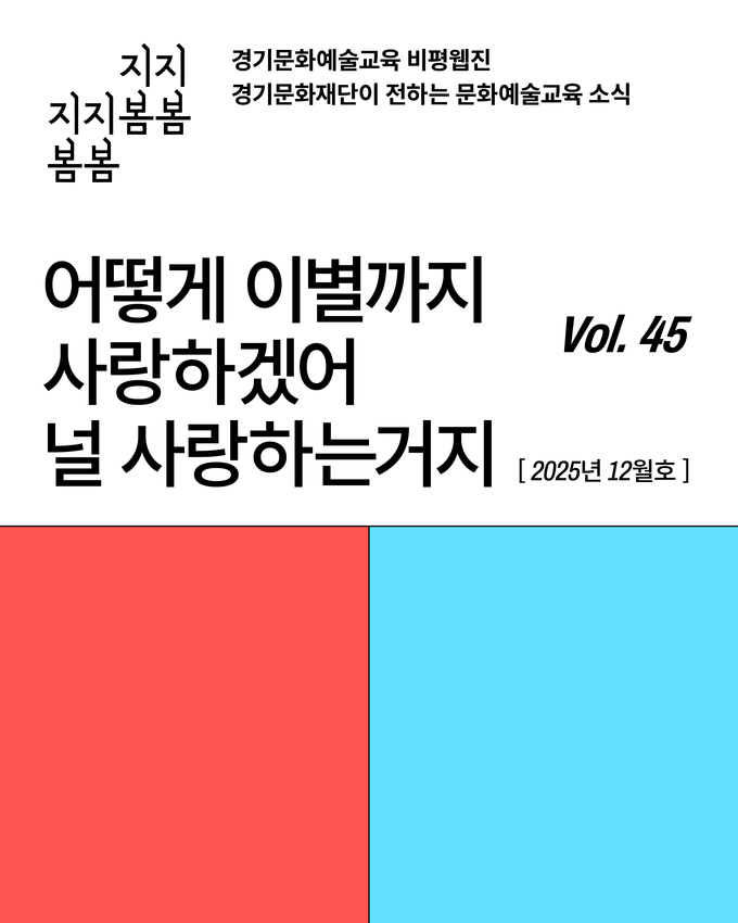 경기도와 경기문화재단이 한 해를 마무리하며 문화예술교육 비평웹진 '지지봄봄' 45호를 발행했다.