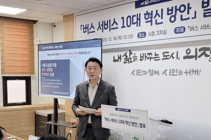 김동근 시장은 18일 시청 브리핑룸에서 기자회견을 열고 시민 이동권을 실질적으로 개선하기 위한 ‘버스 서비스 10대 혁신 방안’을 발표했다.
