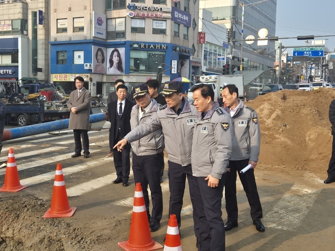 한편 한 청장은 전일 오후 2시쯤 서구청역 주변에서 발생한 도로침하 현장을 방문해 도로통제 등 안전관리 여부도 점검했다. 이 구간은 인근 도로에 매설된 상수도관이 파손돼 가로 1m, 세로 2m, 깊이 1.5m 규모로 도로가 침하됐다.