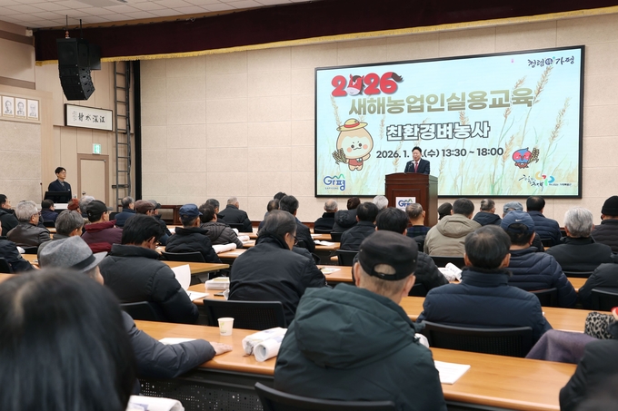 가평군농업기술센터는 지난 13일부터 운영중인 '2026년 새해농업인실용교육'이 농업인들의 큰 호응 속에 진행되고 있다고 15일 밝혔다. 연초 영농계획을 세우려는 농가들이 적극적으로 교육장을 찾으며 교육열기가 높다는 것이다.