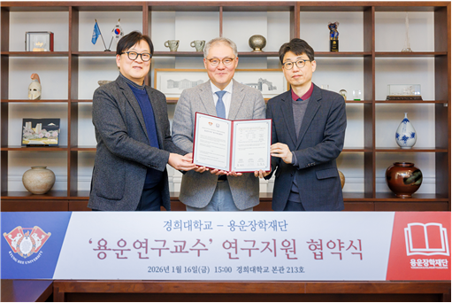 경희대학교가 용운장학재단과 손잡고 국어학 및 한국학 분야 신진 연구자의 안정적인 연구환경 구축을 위한 ‘용운연구교수’ 연구지원 협약을 체결했다. 협약에 따라 경희대 후마니타스칼리지 교양교육연구소는 ‘용운연구교수’ 1인을 선발해 학술 연구를 지원하게 되며, 용운장학재단은 2년간 매년 3000만 원의 연구비를 제공한다.