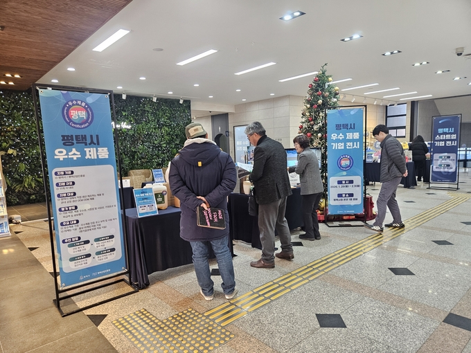 평택시와 평택산업진흥원이 오는 2월 9일까지 시청 1층 로비에서 평택시 우수제품으로 선정된 기업과 관내 새싹 기업(스타트업)의 주요 제품을 전시한다.